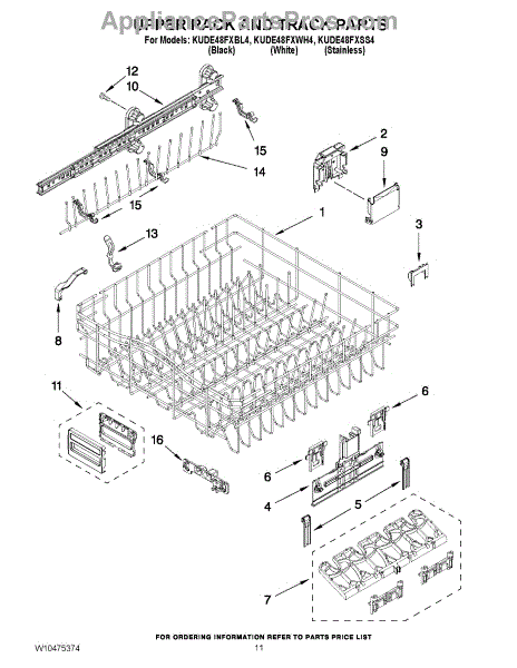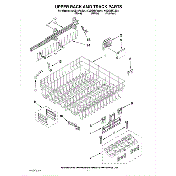 Parts for Kitchenaid KUDE48FXSS4: 09 - Upper Rack And Track Parts