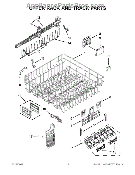 The Track, Asm (RH) is an OEM part for Whirlpool dishwashers. It is the right-hand side track assembly that supports and guides the dishwasher's upper rack as it slides in and out. This part ensures that the rack moves smoothly and securely, allowing for easy loading and unloading of dishes while preventing disruptions during the wash cycle.