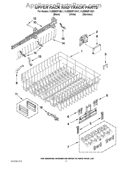 Parts for Kitchenaid KUDE60FXBL1: 09 - Upper Rack And Track Parts