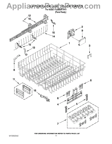 Parts for Kitchenaid KUDE60FXPA1: 09 - Upper Rack And Track Parts