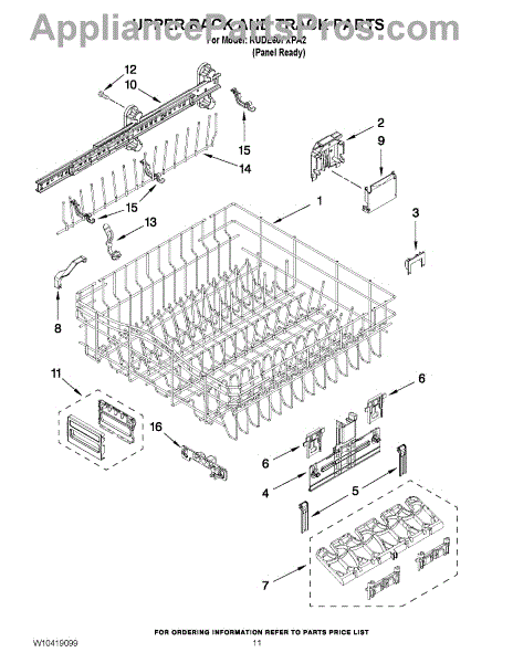 Parts for Kitchenaid KUDE60FXPA2: 09 - Upper Rack And Track Parts