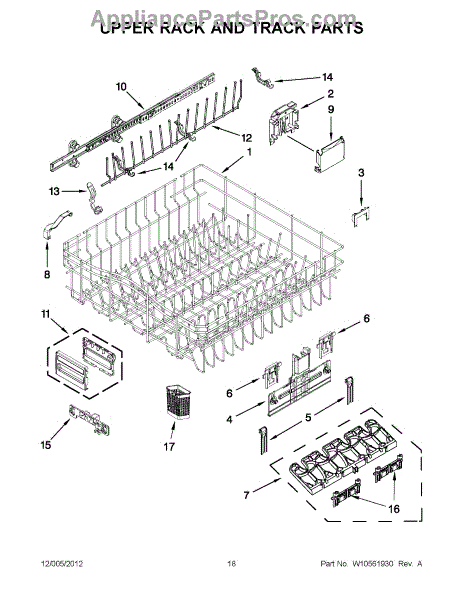 The Upper Dishrack is an OEM part for Whirlpool dishwashers. This dishrack is designed to hold dishes, glasses, and other items securely in the upper part of the dishwasher during the wash cycle, allowing for effective cleaning and efficient use of space.