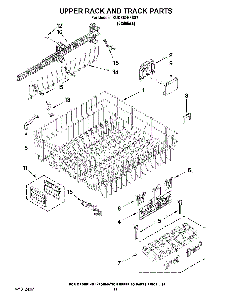 Replacement upper dishrack for dishwashers. Holds dishes and glasses in the top position. Order if your original rack is rusted, cracked, or broken.