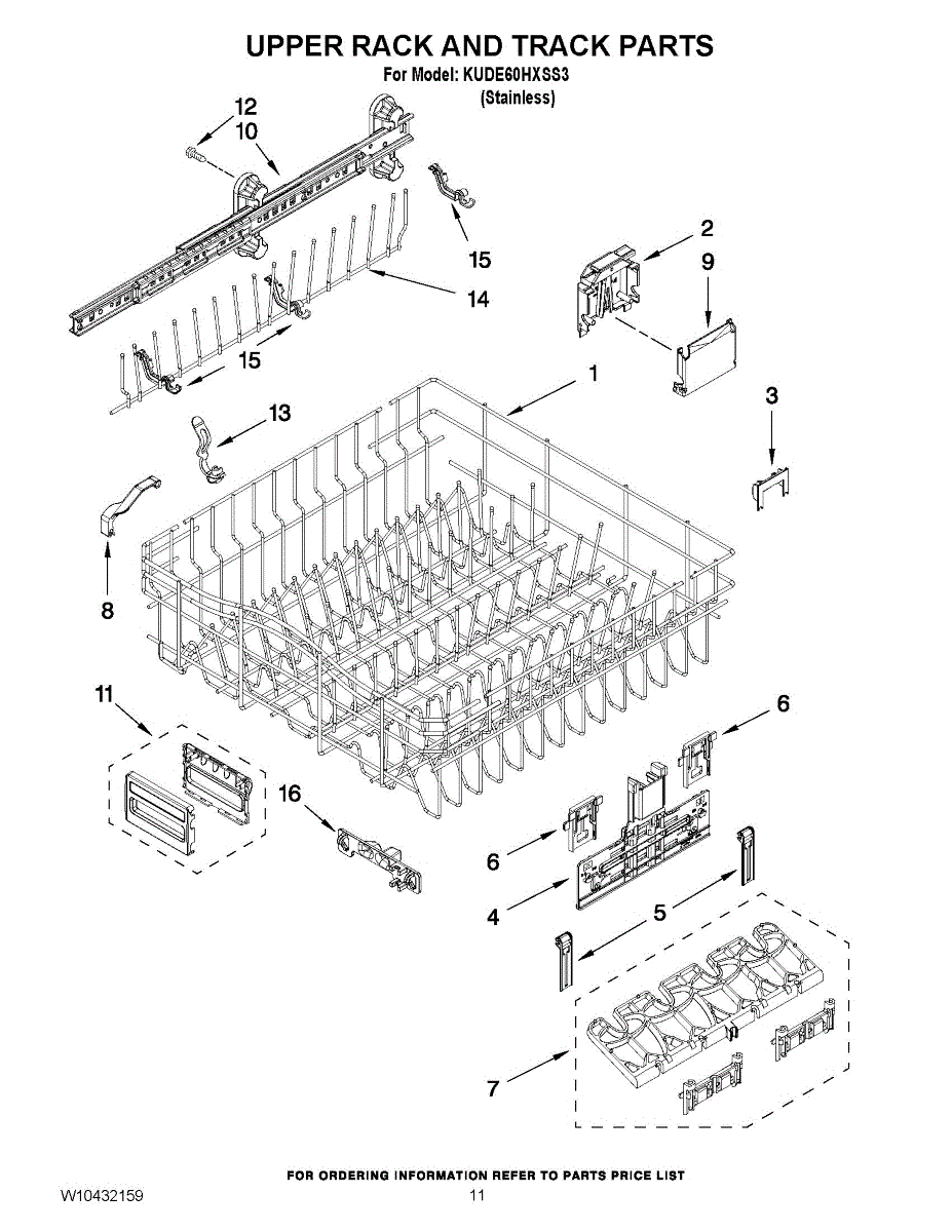 Replacement upper dishrack for dishwashers. Holds dishes and glasses in the top position. Order if your original rack is rusted, cracked, or broken.
