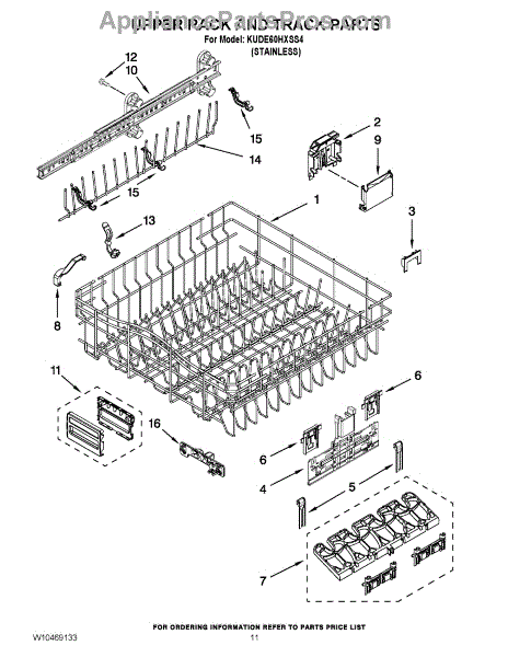 Parts for Kitchenaid KUDE60HXSS4: 09 - Upper Rack And Track Parts