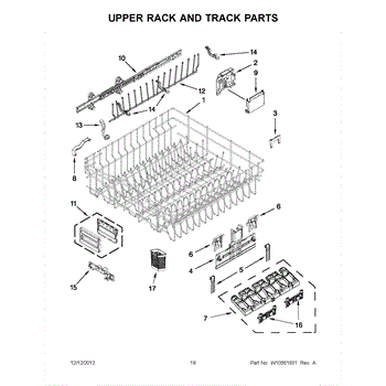 The Upper Dishrack is an OEM part for Whirlpool dishwashers. This dishrack is designed to hold dishes, glasses, and other items securely in the upper part of the dishwasher during the wash cycle, allowing for effective cleaning and efficient use of space.
