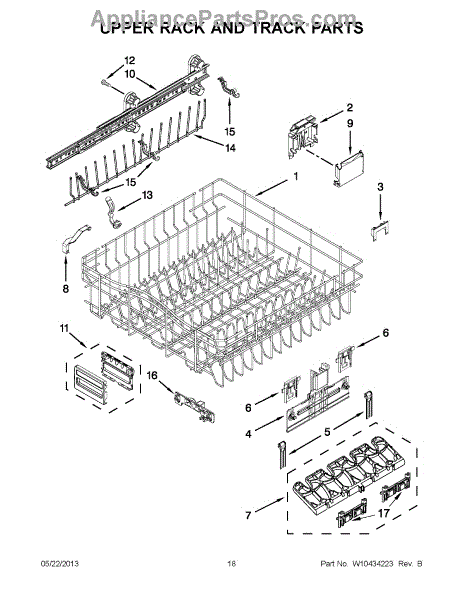 The Track, Asm (RH) is an OEM part for Whirlpool dishwashers. It is the right-hand side track assembly that supports and guides the dishwasher's upper rack as it slides in and out. This part ensures that the rack moves smoothly and securely, allowing for easy loading and unloading of dishes while preventing disruptions during the wash cycle.