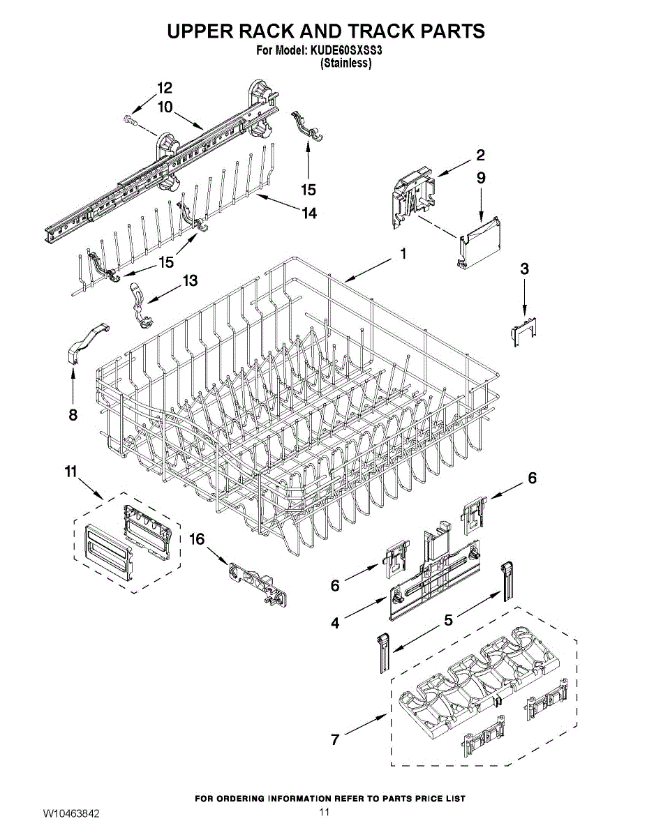 Parts for Kitchenaid KUDE60SXSS3: 09 - Upper Rack And Track Parts
