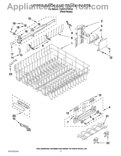 The Upper Dishrack is an OEM part for Whirlpool dishwashers. This dishrack is designed to hold dishes, glasses, and other items securely in the upper part of the dishwasher during the wash cycle, allowing for effective cleaning and efficient use of space.