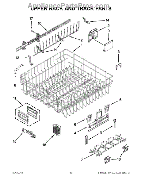 The Track, Asm (RH) is an OEM part for Whirlpool dishwashers. It is the right-hand side track assembly that supports and guides the dishwasher's upper rack as it slides in and out. This part ensures that the rack moves smoothly and securely, allowing for easy loading and unloading of dishes while preventing disruptions during the wash cycle.