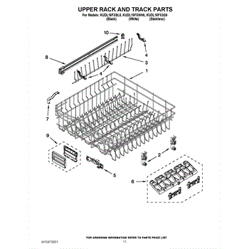 Parts for Kitchenaid KUDL15FXBL5: 09 - Upper Rack And Track Parts