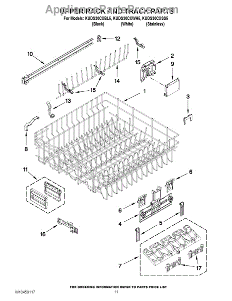 Parts for Kitchenaid KUDS30CXBL5: 09 - Upper Rack And Track Parts