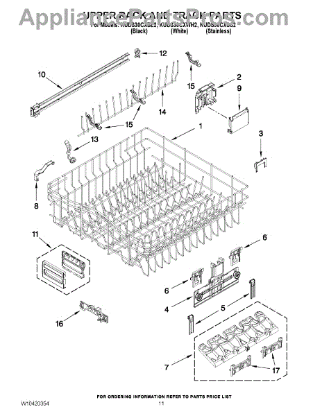 Parts for Kitchenaid KUDS30CXSS2: 09 - Upper Rack And Track Parts