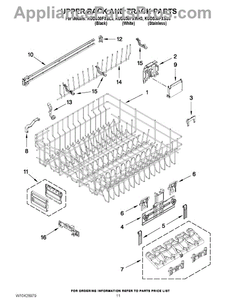 Parts for Kitchenaid KUDS30FXBL3: 09 - Upper Rack And Track Parts
