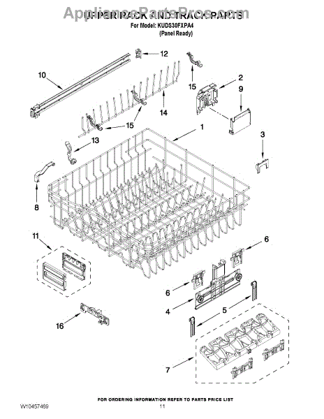 Parts for Kitchenaid KUDS30FXPA4: 09 - Upper Rack And Track Parts