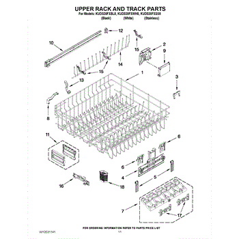 Parts for Kitchenaid KUDS30FXWH8: 09 - Upper Rack And Track Parts