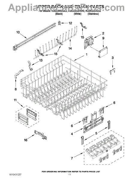 Parts for Kitchenaid KUDS30SXSS2: 09 - Upper Rack And Track Parts