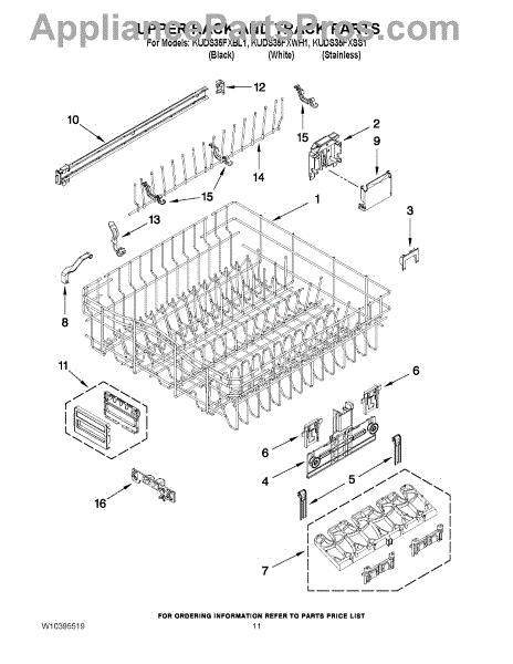 Parts for Kitchenaid KUDS35FXBL1: 09 - Upper Rack And Track Parts