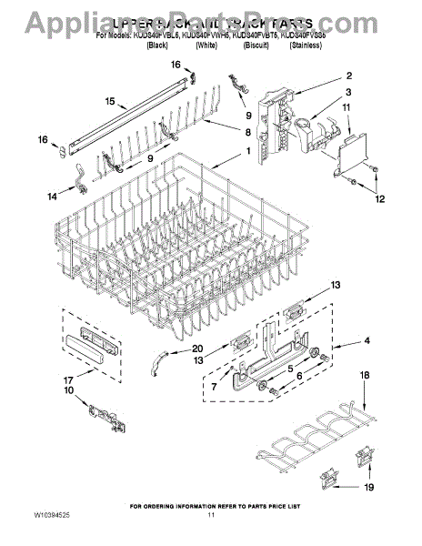 Parts for Kitchenaid KUDS40FVSS5: 09 - Upper Rack And Track Parts