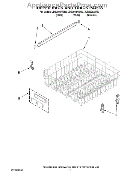 The Upper Dishrack Rail is an OEM replacement part for Whirlpool dishwashers. It guides upper racks in and out for easy access to dishes.