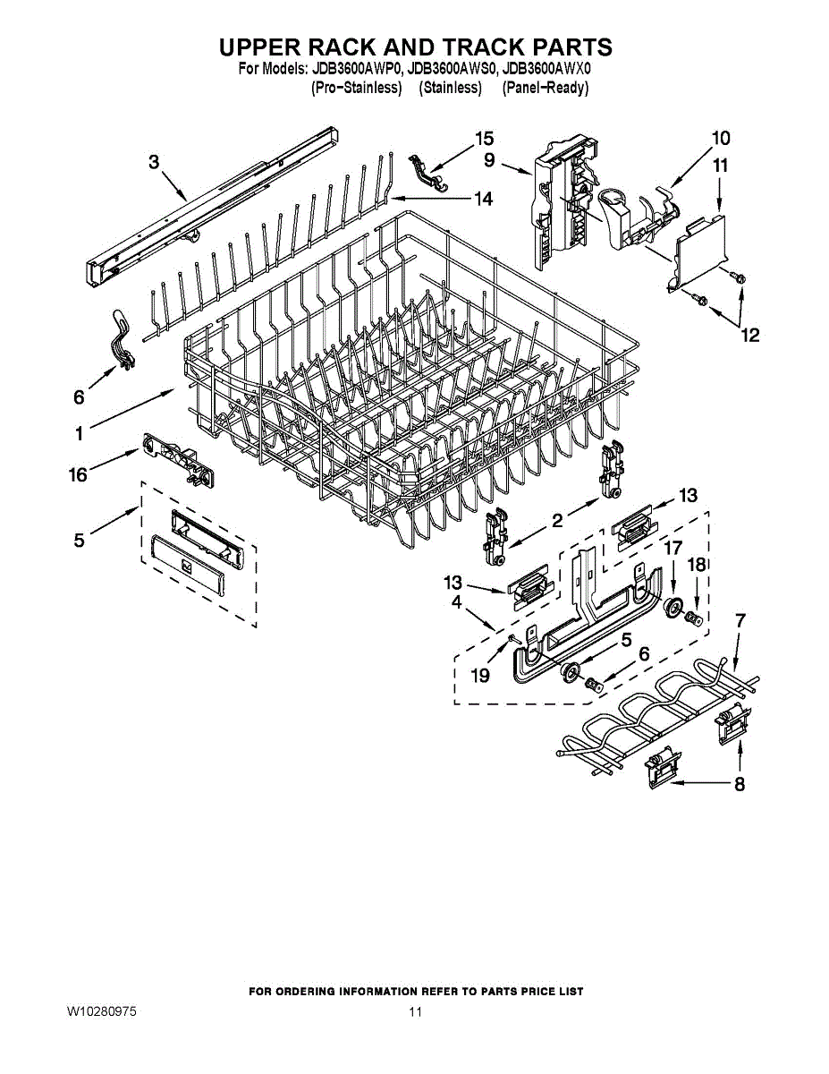 Upper rack assembly for dishwashers in onyx black finish. Holds glasses, cups, and small dishes. Replace your cracked, bent, or missing upper rack.