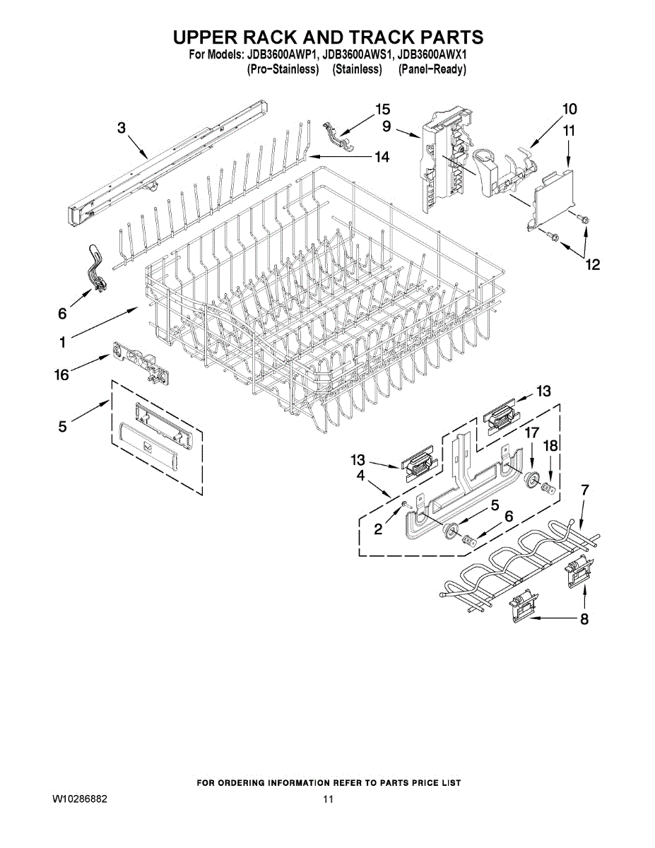 Replaces broken or worn dishwasher upper rack adjuster assembly. Includes wheels and mounting hardware for smooth rack adjustment and gliding action.