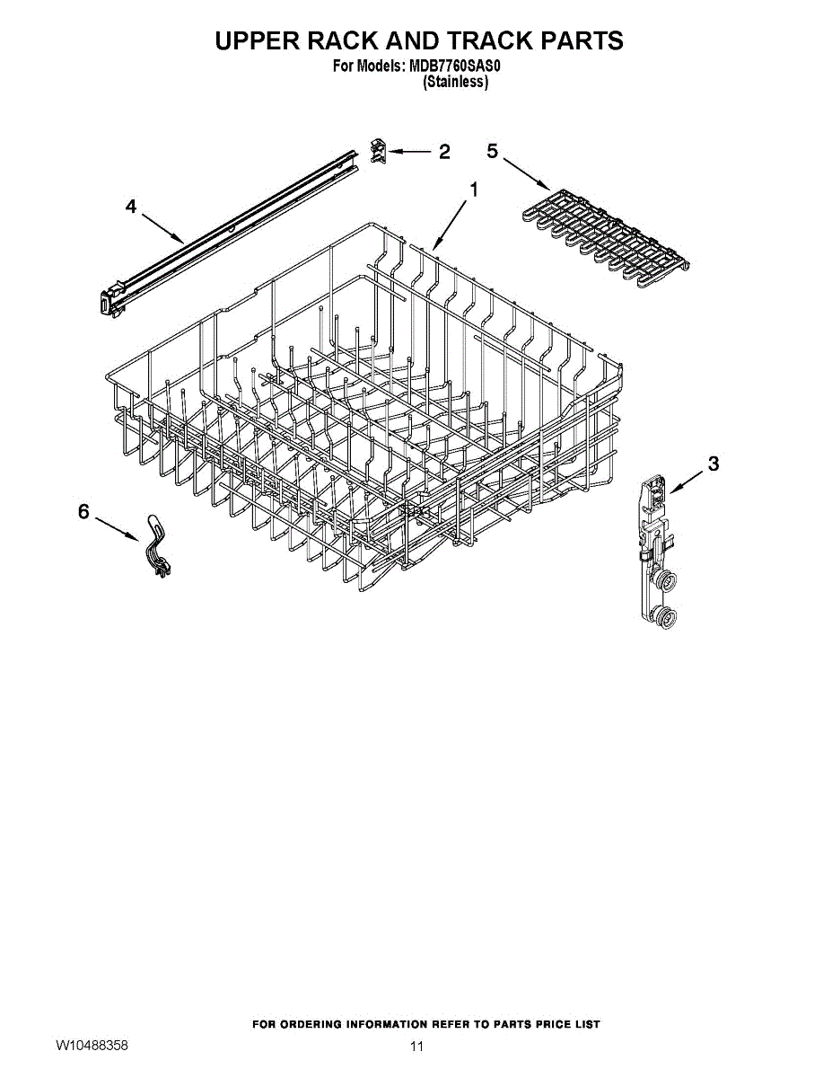 Replacement upper dishrack stop clip for dishwashers. Holds the upper rack securely in place to prevent it from sliding out during loading and unloading.