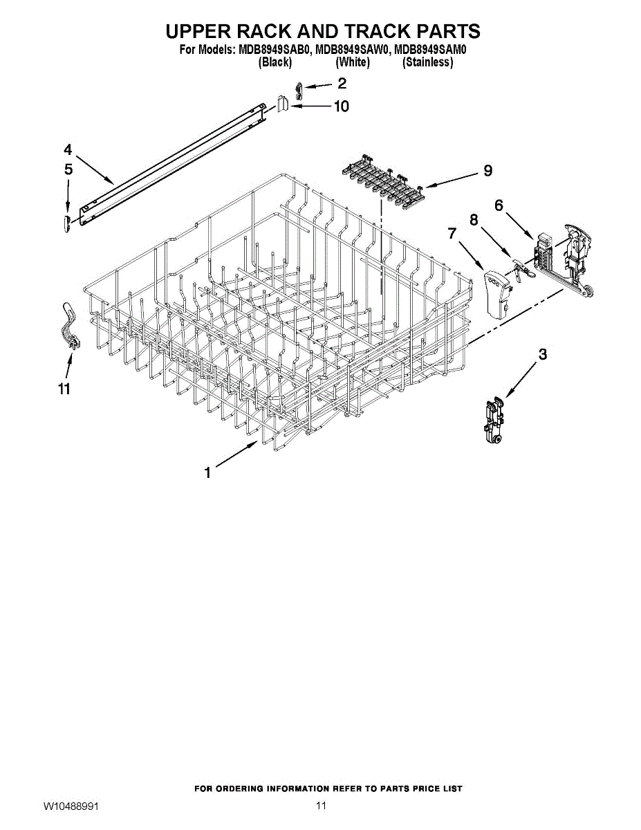 The Upper Dishrack Rail is an OEM replacement part for Whirlpool dishwashers. It guides upper racks in and out for easy access to dishes.