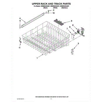 The Upper Dishrack Rail is an OEM replacement part for Whirlpool dishwashers. It guides upper racks in and out for easy access to dishes.