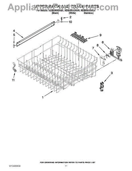 The Upper Dishrack Rail is an OEM replacement part for Whirlpool dishwashers. It guides upper racks in and out for easy access to dishes.