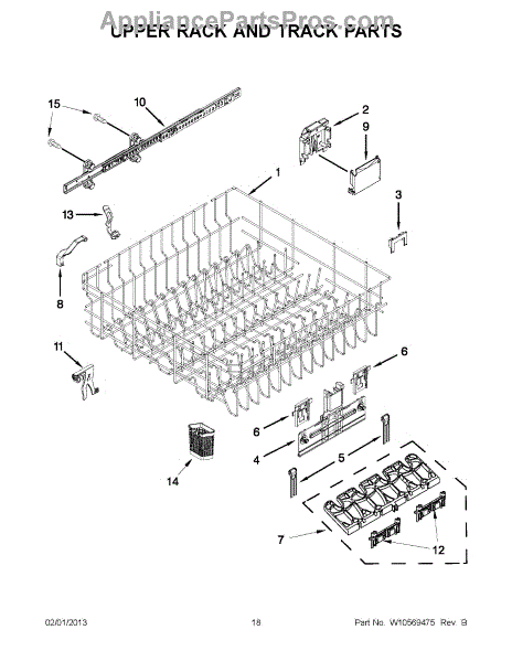 Replacement upper dishrack for dishwashers. Holds dishes, glasses, and utensils during wash cycles. Replace if rusted, cracked, or broken tines damage items.