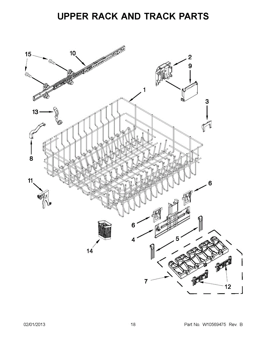 Right-hand track assembly that guides the upper dishwasher rack as it slides in and out. Replace if cracked, broken, or ball bearings fall out.