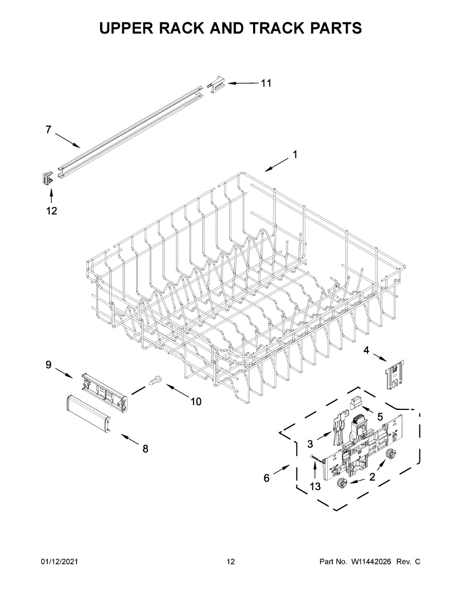 Replace your dishwasher's rack adjuster if it's cracked, broken, or missing. This component allows you to adjust the upper rack height for taller items.