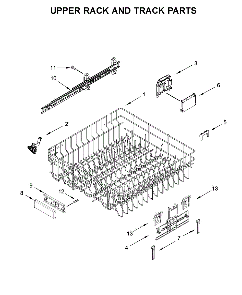 Replace your dishwasher's upper dishrack assembly when the top rack is cracked, rusted, or damaged. Restores secure dish organization and smooth sliding.