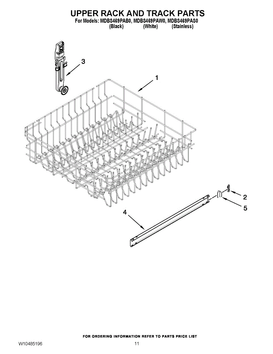 The Upper Dishrack Rail is an OEM replacement part for Whirlpool dishwashers. It guides upper racks in and out for easy access to dishes.