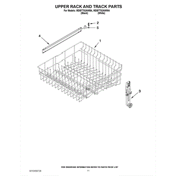 The Upper Dishrack Rail is an OEM replacement part for Whirlpool dishwashers. It guides upper racks in and out for easy access to dishes.