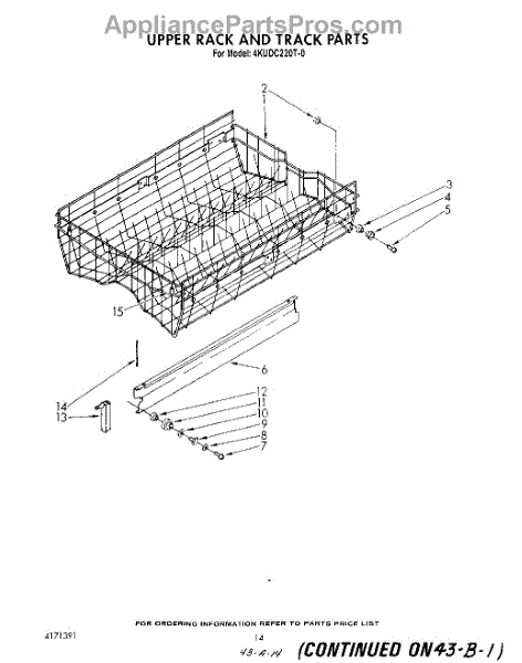 Parts for Whirlpool 4KUDC220T0: 11 - Upper Rack And Track Parts