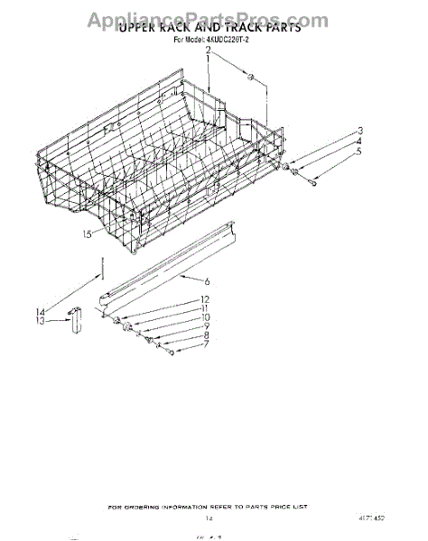 Parts for Whirlpool 4KUDC220T2: 11 - Upper Rack And Track Parts