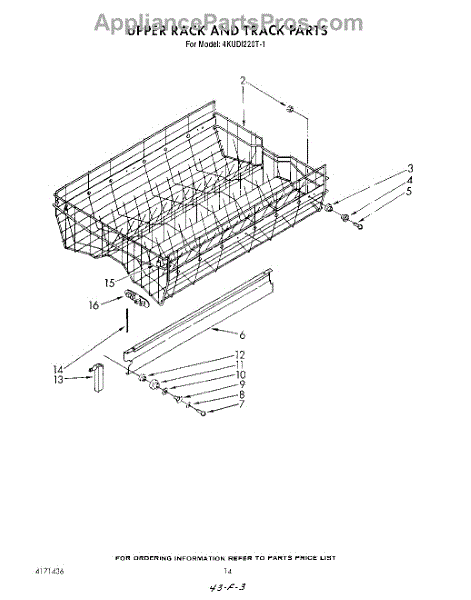 Parts for Whirlpool 4KUDI220T1: 11 - Upper Rack And Track Parts