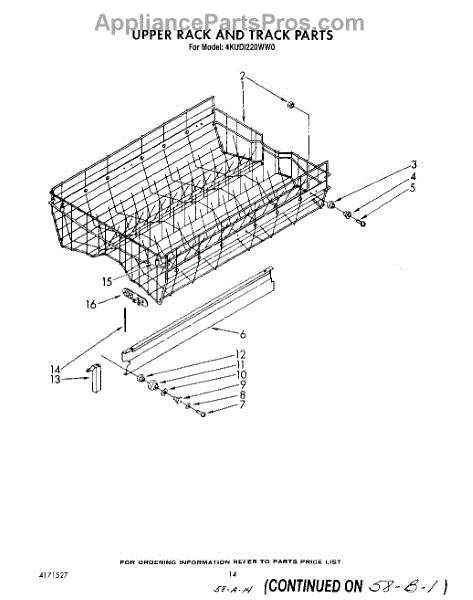 Parts for Whirlpool 4KUDI220WW0: 11 - Upper Rack And Track Parts