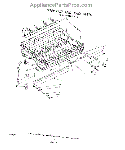 Parts for Whirlpool 4KUDS220T0: 11 - Upper Rack And Track Parts