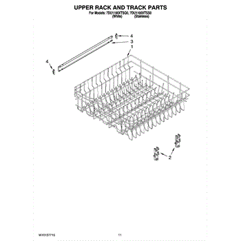 Parts for Whirlpool 7DU1100XTSS0: 09 - Upper Rack And Track Parts