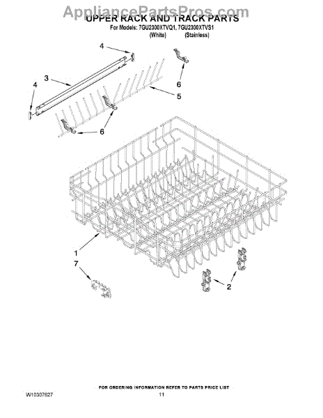 Parts for Whirlpool 7GU2300XTVS1: 09 - Upper Rack And Track Parts