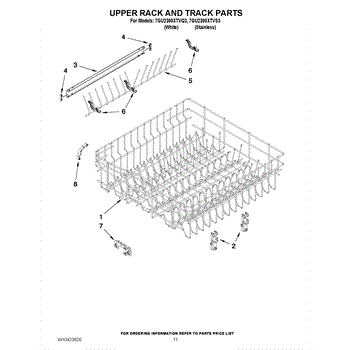 Parts for Whirlpool 7GU2300XTVS3: 09 - Upper Rack And Track Parts