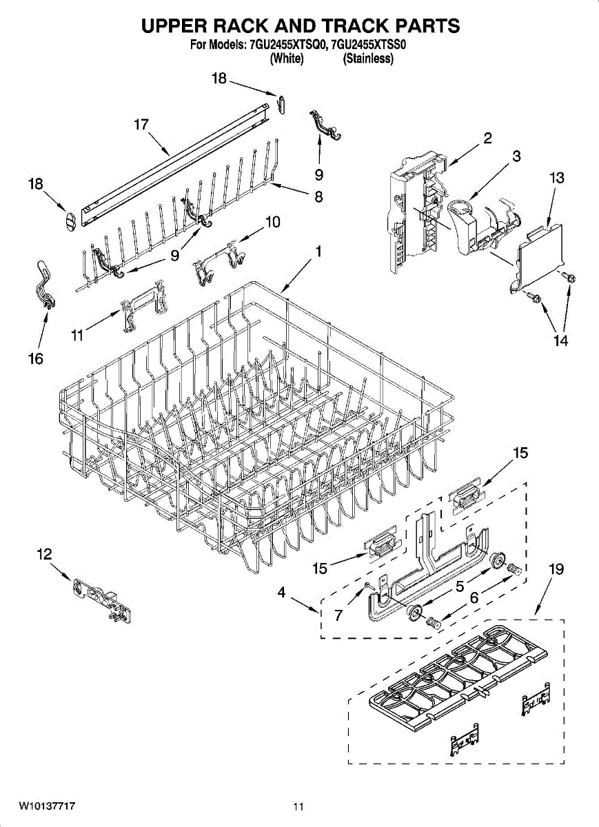 The Upper Dishrack Rail is an OEM replacement part for Whirlpool dishwashers. It guides upper racks in and out for easy access to dishes.