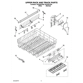 Parts for Whirlpool 7GU2455XTSS0: 09 - Upper Rack And Track Parts
