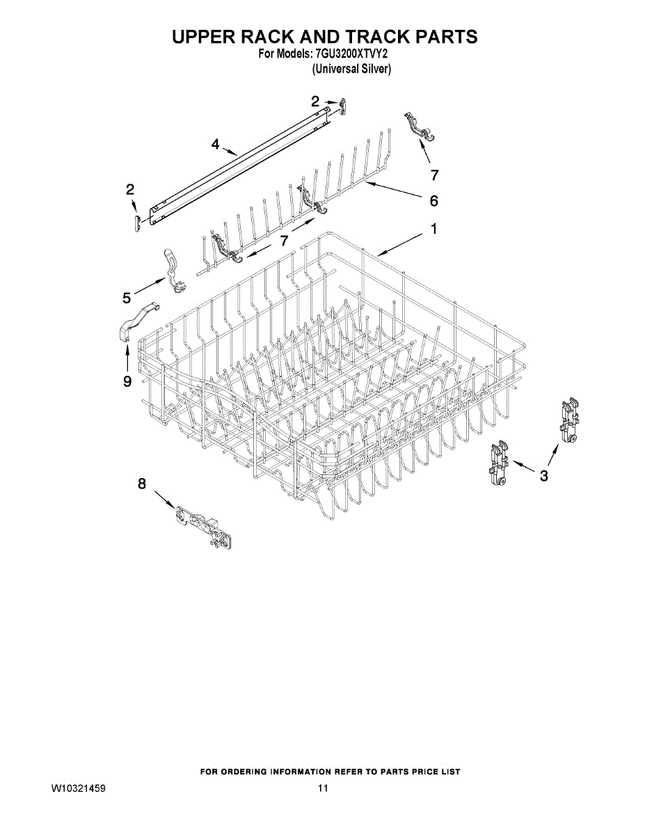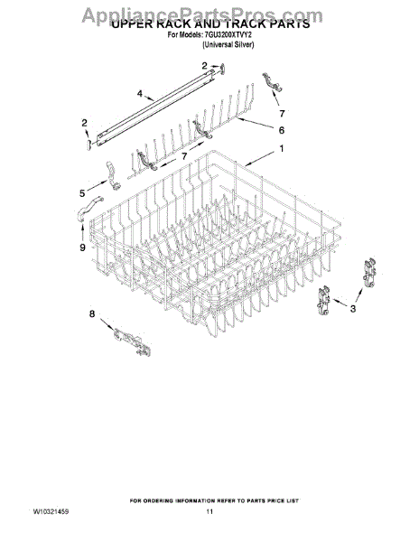 Guides the upper rack smoothly in and out of your dishwasher. Replace if cracked, broken, or wheels no longer roll properly along the track.