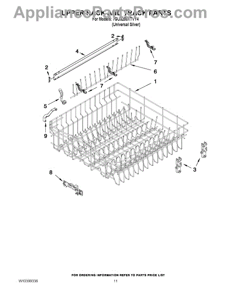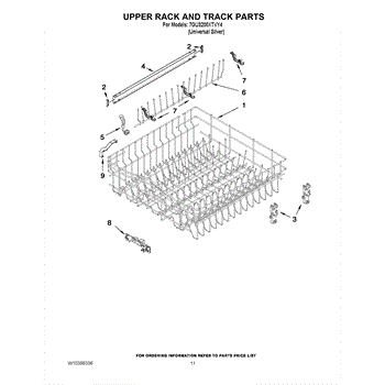 The Upper Dish Rack is an OEM replacement part for Whirlpool dishwashers. Located on the upper level inside the tub, it provides an area for washing smaller dishes, utensils, and glasses.