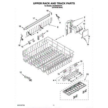 Parts for Whirlpool 7GU3600XTSY0: 09 - Upper Rack And Track Parts