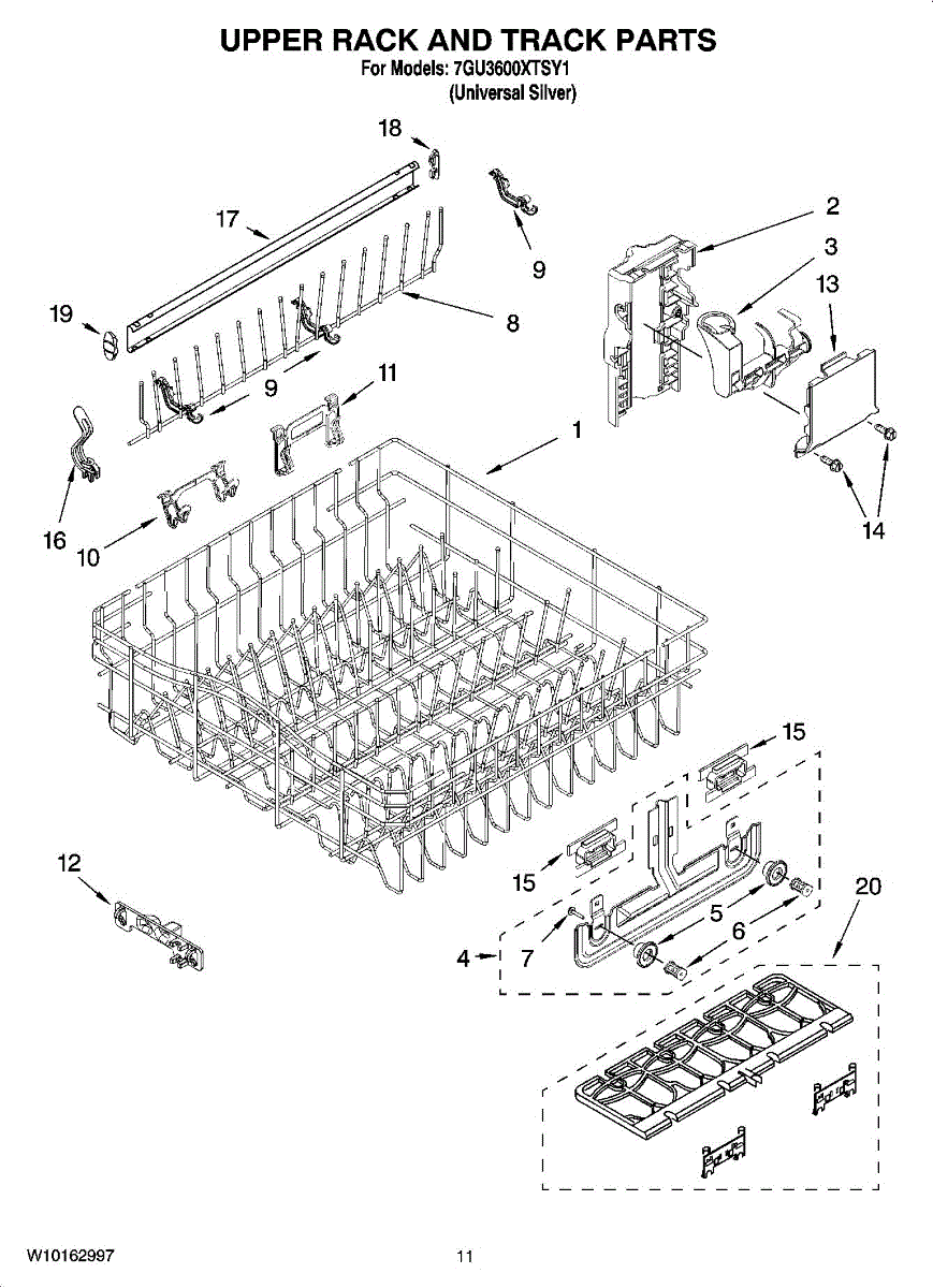 Upper dish rack assembly for dishwashers. Holds glasses, cups, and small items on the top level. Replace if cracked, warped, rusted, or deteriorating.